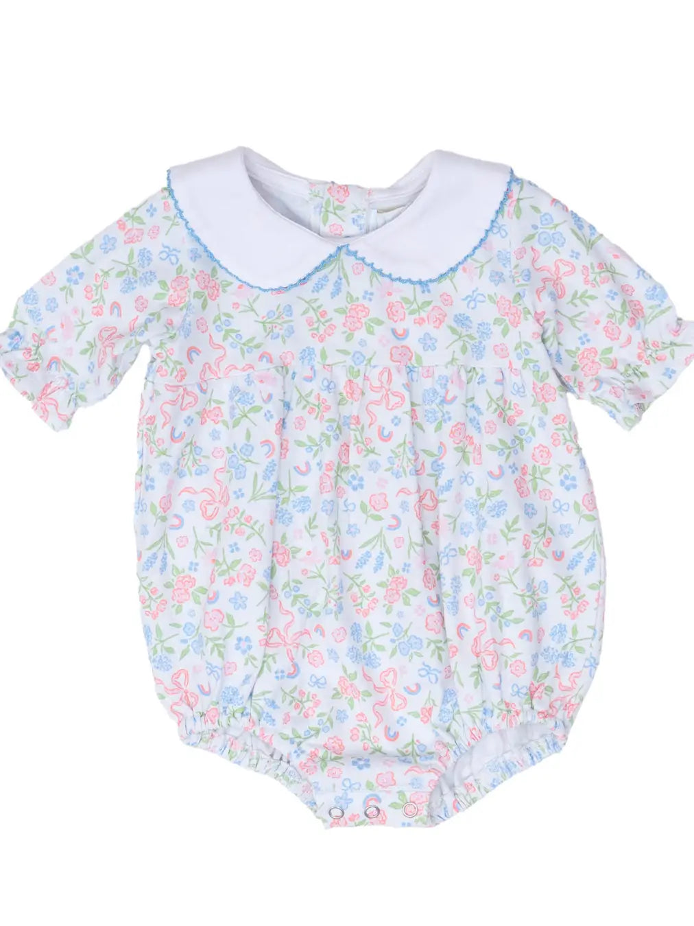 The Mary Mills Ditsy Bow Bubble is a sweet and charming piece, perfect for young girls who love playful, feminine styles. This bubble is ideal for occasions like family outings, birthday parties, or casual gatherings, offering a mix of comfort, elegance, and charm. We recommend washing on gentle and hanging to dry.