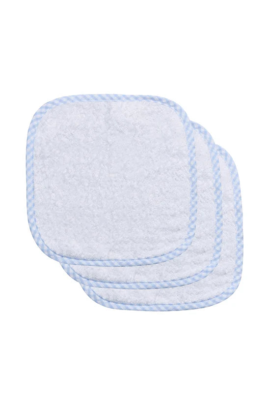 This set of 3 Washcloths is made from absorbent cotton terry and finished with matching gingham trim to coordinate perfectly with our appliqué and monogrammable collections. Rolled up in a set of three and tied with coordinating ribbon, they’re ready to gift straight out of the box.