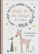 Jesus’ mother, Mary, “kept and pondered” the details of her child’s birth. . . . . .with the Kept in My Heart KJV Bible, you can too! Featuring the complete text of the King James Version in a sturdy hardcover binding, this Kept in My Heart KJV Bible includes 24 full-color pages featuring adorable artwork and lined space for capturing the exciting and important details of your child’s early years: baby’s length and weight first visitors date of first smile earliest words spoken when he or she crawled and took their first steps Beautifully packaged and affordably priced, the Kept in My Heart KJV Bible will become a true family heirloom. It makes an ideal gift, for baby showers or for yourself!
