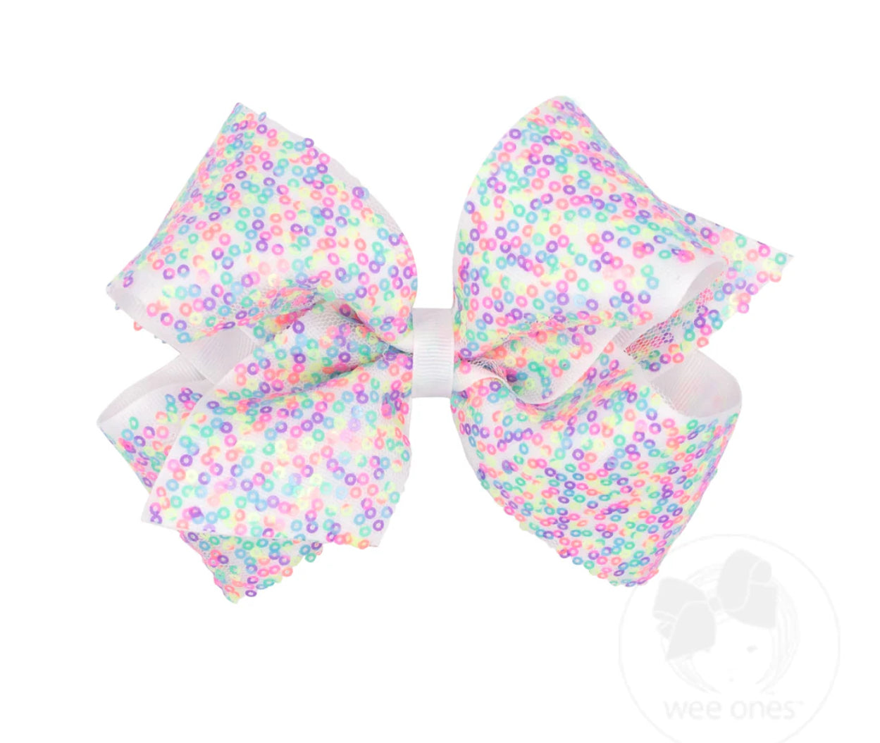 Add sparkle to her style with this confetti sequin bow layered over a soft grosgrain underlay. Available in Light Orchid Purple, Light Pink, or White and in Mini, Medium, or King sizes, it’s the perfect party-ready accessory for birthdays, celebrations, and dress-up fun. This bow is sure to stay in her hair all day with our patented WeeStay™ no-slip hair clip.