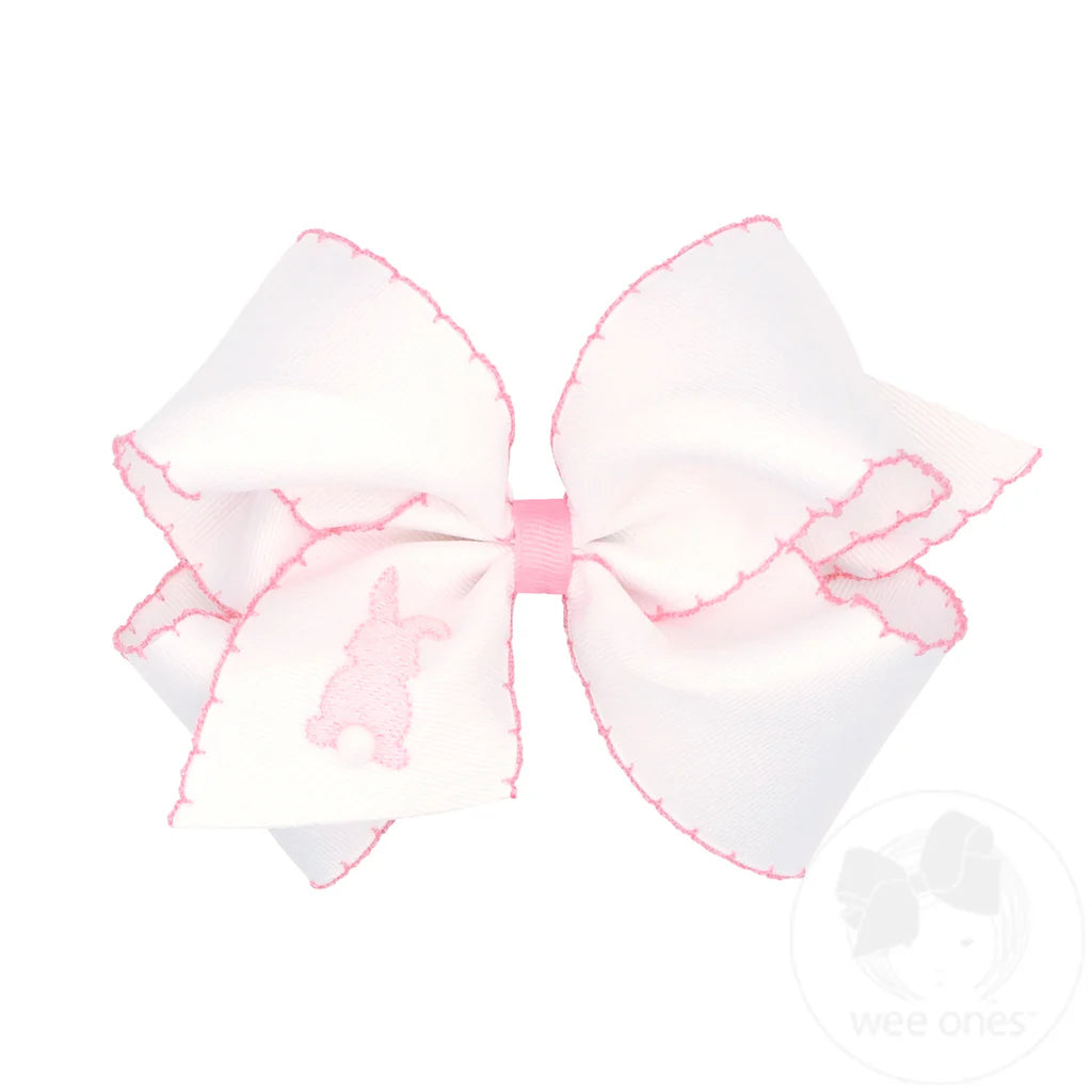 King Grosgrain Bows with Moonstitch Edge and Pink Bunny Embroidery