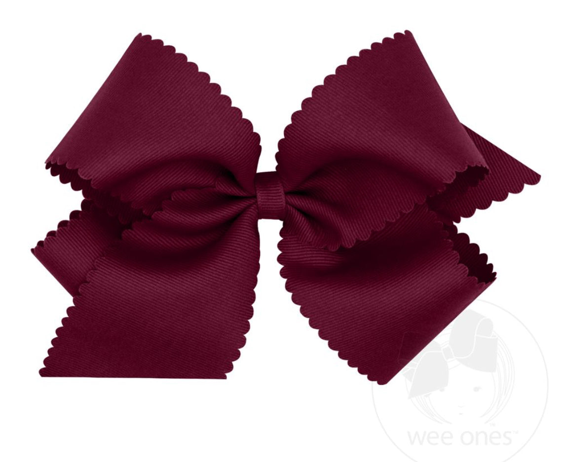 King Grosgrain Hair Bow Scalloped Edge- Burgundy