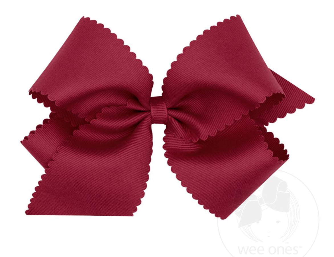 King Grosgrain Hair Bow Scalloped Edge- Cranberry