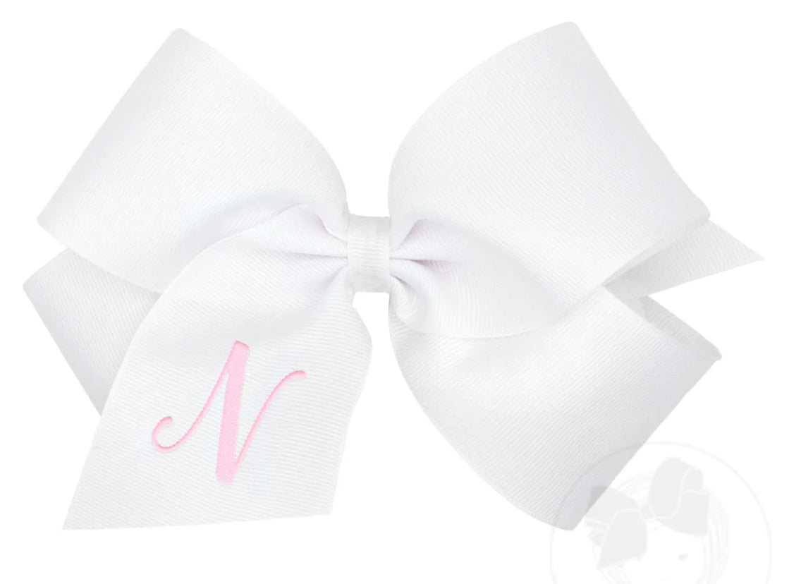 King Monogrammed Grosgrain Girls Hair Bow - White with Light Pink Initial- N