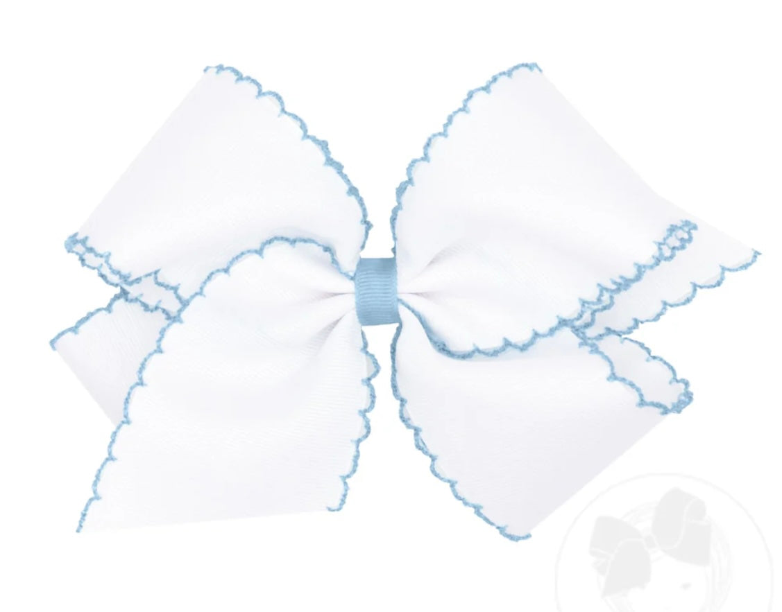 King Moonstitch Grosgrain Hair Bow with Contrasting Wrap- White With Blue