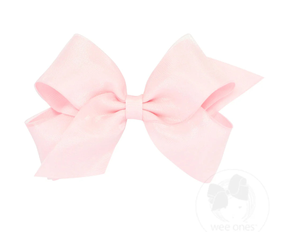 Light Pink Medium Organza and Grosgrain Overlay Hair Bow