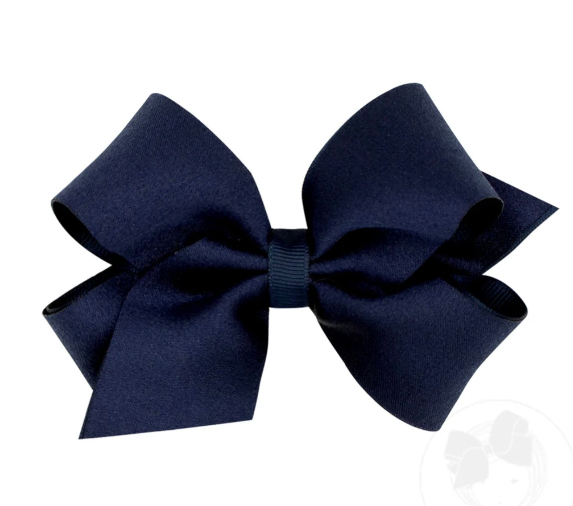 Medium Crepe Satin with Grosgrain Underlay Hair Bow- Pea Coat