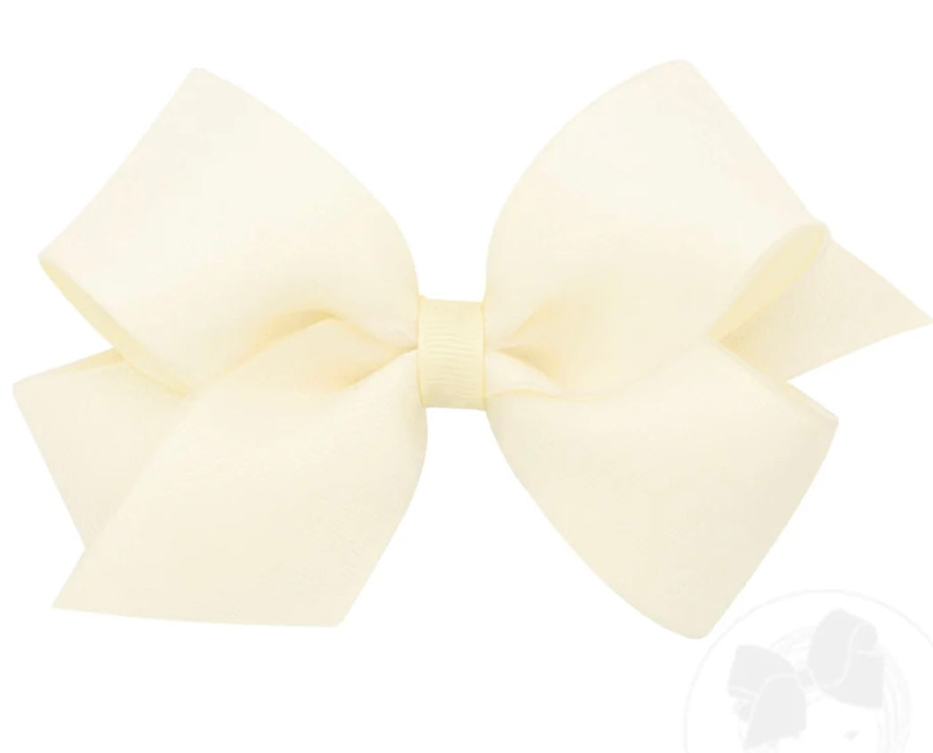 Medium Organza and Grosgrain Overlay Hair Bow-Off White