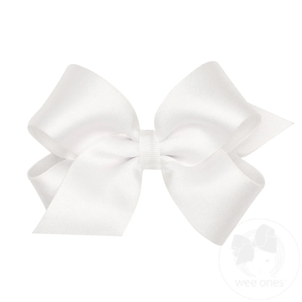 Medium Satin Overlay Bow- White