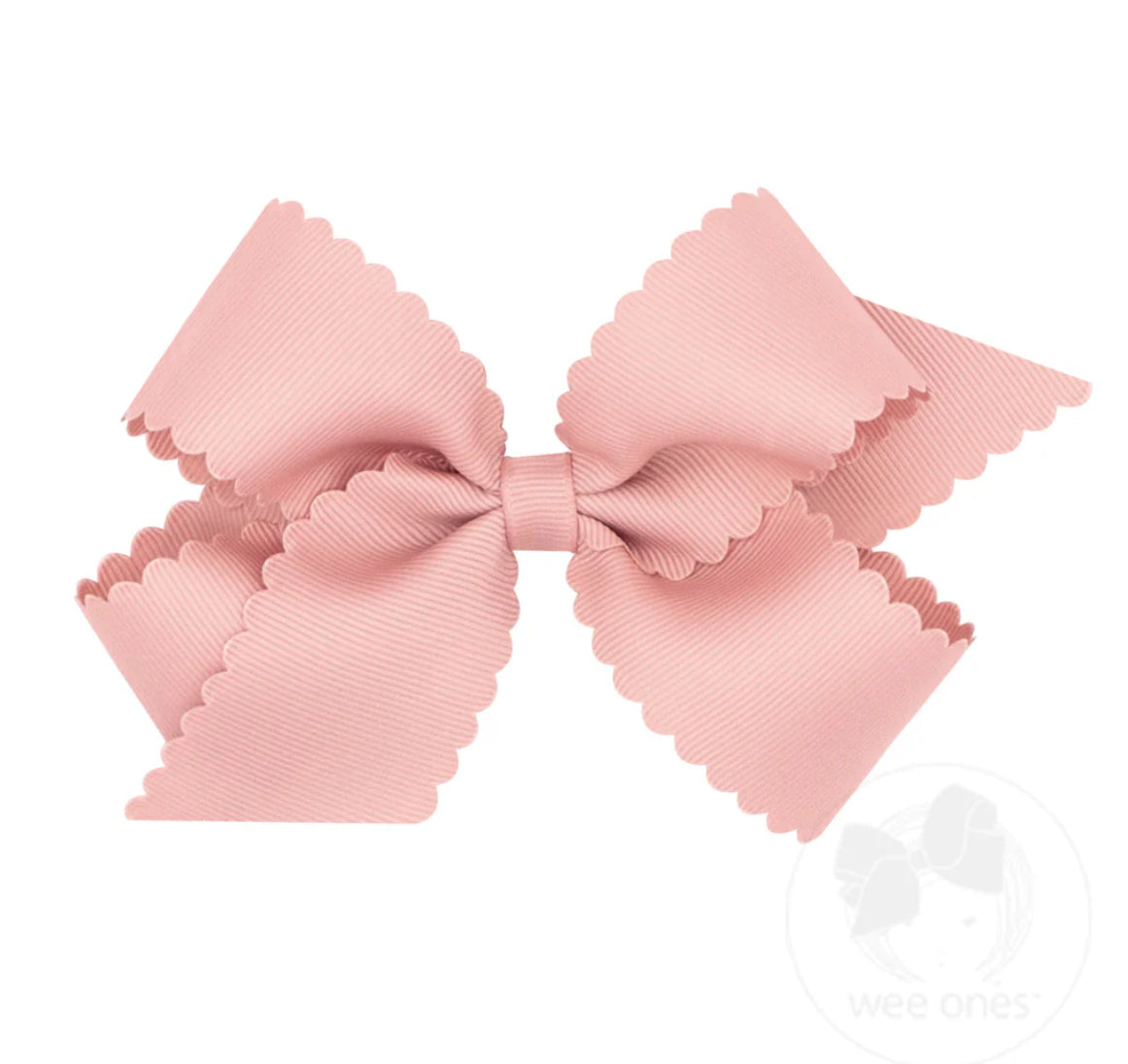 This medium bow with scalloped detailing makes a beautiful statement and is perfect for girls of all ages. This bow is sure to stay in her hair all day with our patented WeeStay™ no-slip hair clip. Available in a variety of grosgrain colors to match any outfit.