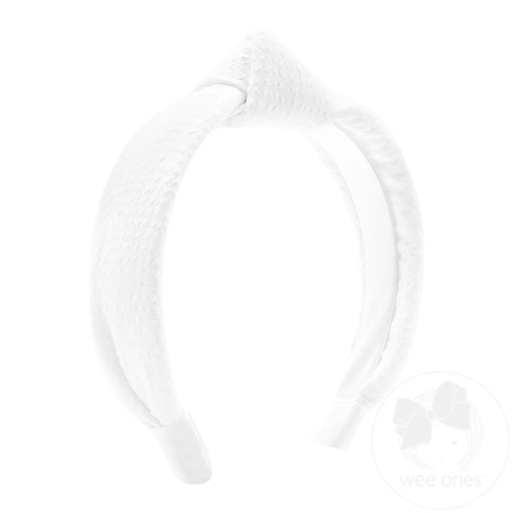 White-Genuine Seersucker Fabric Knot Padded Headband
