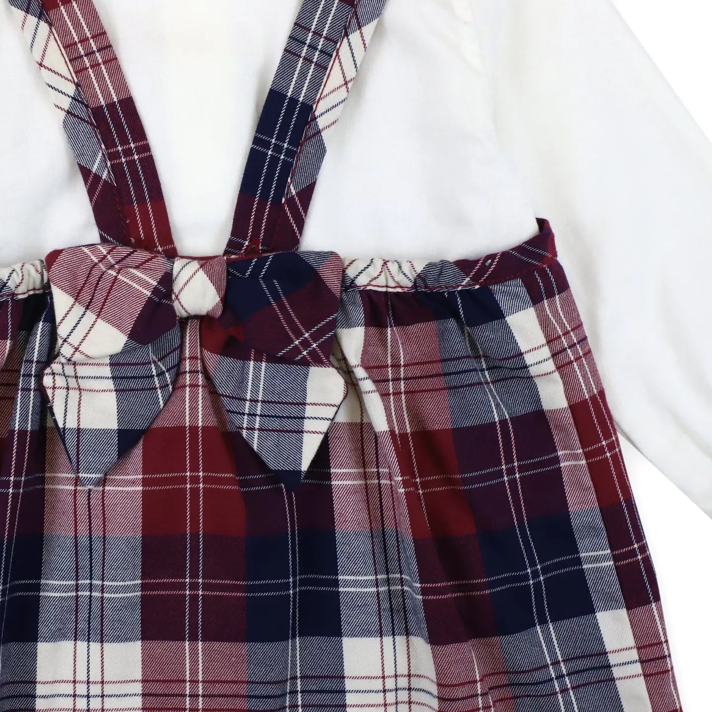 This is the set that will get your little girl constant oohs and ahhs! Our super sweet two piece set features a woven long sleeve bodysuit with a peter pan collar that buttons down the front and also has inseam snaps for easy dressing. Pair it with the feminine twill jumper dress in our fun and festive fall plaid. Perfect for a gift (although if you keep it for yourself, we'll understand). * 100% Organic Cotton, exclusive of trims. Garment is OCS-Certified. Learn more about our certifications here. * Set includes: long sleeve peter pan collar bodysuit, jumper dress. * Not intended for sleepwear. Machine washable.
