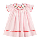 Make the holidays extra sweet with the Pink Christmas Smocked Bishop Dress. Made from 100% cotton, this classic bishop-style dress features a smocked neckline with festive embroidery and pretty red trim accents. The traditional calf- to ankle-length silhouette ensures comfort and timeless style for your little one.