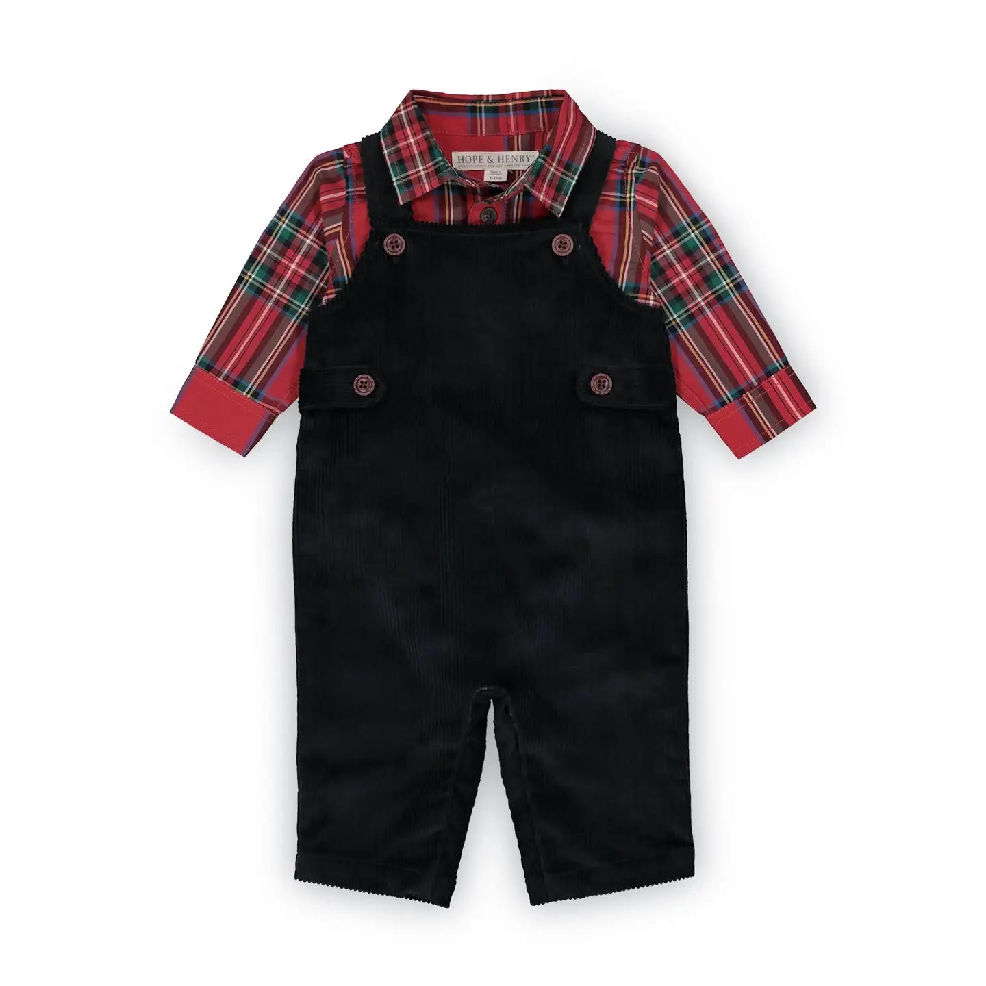 It doesn't get cuter than our mix and match overall set in soft organic cotton for baby. Set includes a long sleeve poplin bodysuit and corduroy overall, which both have concealed ring snaps for ease of dressing baby. Other details like the faux leather buttons on the overall and classic shirting construction on the bodysuit make this a special set. The ultimate aww-worthy gift or holiday picture-taking outfit! * 98% Organic Cotton, 2% Spandex, exclusive of trims. Garment is 100% GOTS-Certified Organic. Learn more about our certifications here. * Bodysuit and overall both have concealed ring snaps at inseam for easy diaper changes. Corduroy overall has faux leather buttons. * Not intended for sleepwear. Machine washable.