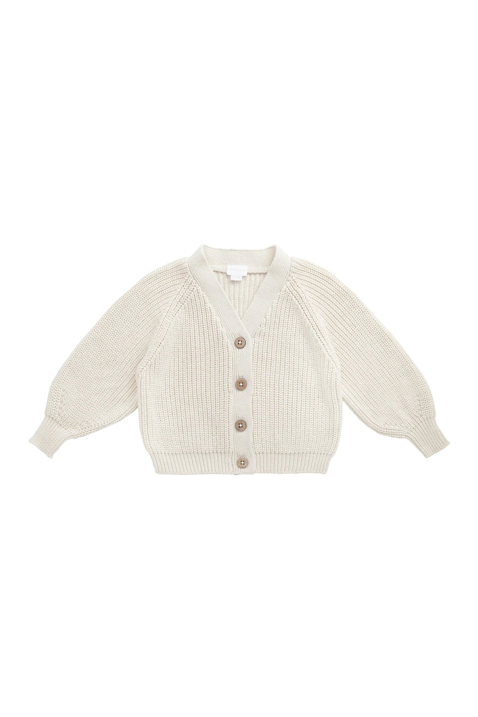 The Paloma Cardigan in Vanilla is a timeless layering piece designed to keep your little one cozy and stylish. Featuring a classic V-neck silhouette, ribbed cuffs and hem, and delicate coconut buttons, this cardigan is crafted from 100% Cotton for breathable warmth and everyday comfort.