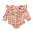 This adorable Smocked Turkey Baby Bubble is a charming addition to your little one's wardrobe. Crafted with a delightful gingham pattern, it showcases an intricately embroidered smocked chest adorned with delicate ruffle detailing, adding a touch of elegance. The gathered long sleeves provide a cozy fit, ensuring comfort throughout the day. Designed with practicality in mind, the inner leg snaps allow for easy diaper changes. Made from a soft and breathable blend of 64% cotton, 28% rayon, and 8% polyester, this bubble is perfect for keeping your baby comfortable. Ideal for ages 0-3 months, it's a must-have for festive occasions or everyday wear.