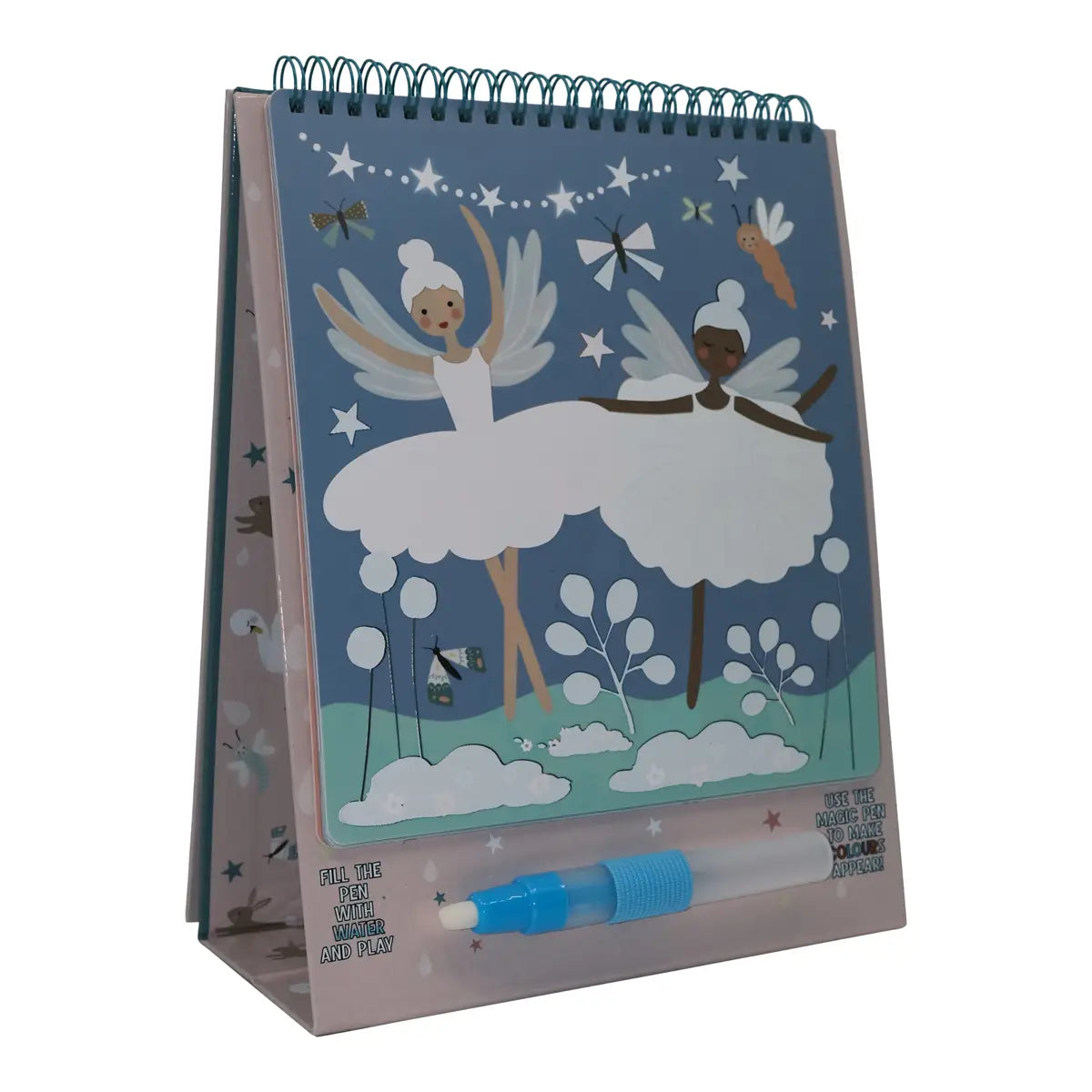 Our Magic Water Easel Pads are so much fun! Like our popular water cards, fill up the pen with water and color in the designs to see them magically appear, then disappear once dry. The 6 brightly colored fun sheets are held together in a spiral bound pad allowing you to flip them over once complete. The built-in easel stands the pad up so you can use it like a ‘proper’ artist! The pad is reusable over and over again and you’ll have so much fun revealing the colorful ballerinas, swans and friendly forest animals! Once you’ve finished your creative session, close the pad and secure your special water pen in the elastic closure to keep it nice and safe. This portable pad is perfect for taking out and about (and you don’t have to worry about any mess either!) Suitable for ages 3+