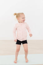 It’s finally here! An active line made for dance, cheer, yoga workouts or just lounging at home. She will love the little details of this jacket like the ROSE on the zipper, thumbholes, and the ruffle on the back. And it has pockets!