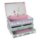 Our musical jewellery boxes are so sweet and are one of our best-selling products! The Enchanted Jewellery Box is covered with gorgeous illustrations of ballerinas, swans and more. The three handy drawers are perfect for storing treasured trinkets. Wind the key up at the back, then lift the lid to see a beautiful ballerina twirl around to the tune of ‘swan lake’. Enchanted Jewellery Box dimensions: 12.5 x 19 x 11cm. Suitable for ages 3+