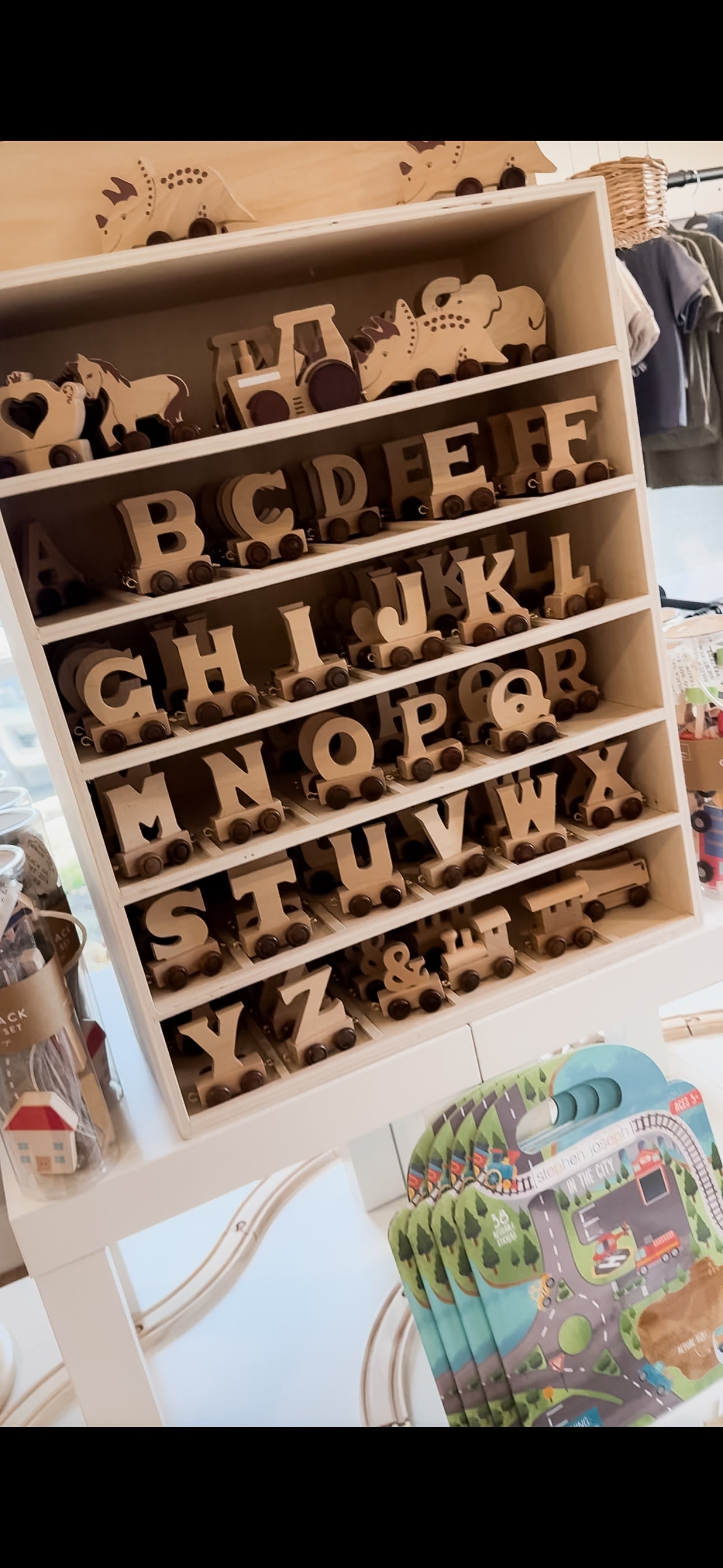 Beautifully made, wooden name train letters. Letters fix to each other or the front or back of figure. Encourage motor and language skills and let the imagination run wild.