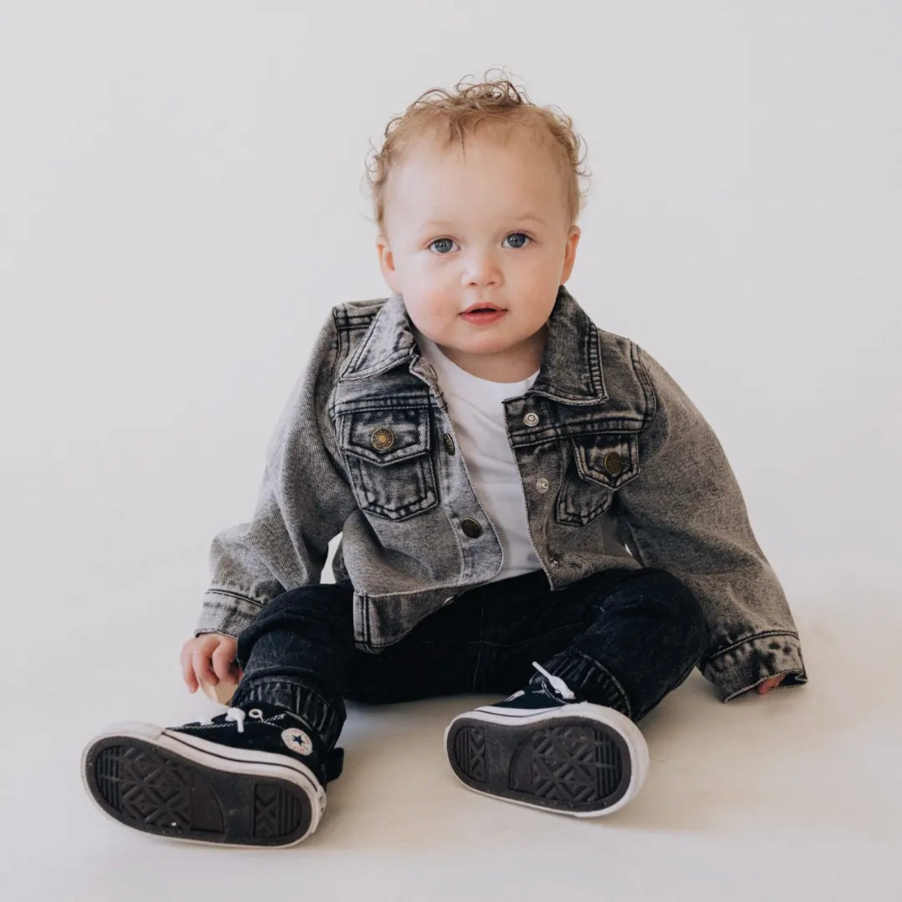 Get ready to rock the trendiest mommy and me outfits with our irresistible silver gray denim jackets! The unique black mineral wash adds a touch of edginess, making you and your mini the coolest duo ever. Plus, you both will love the stretchy material of these denim jackets making them comfortable and your new favorite jacket.