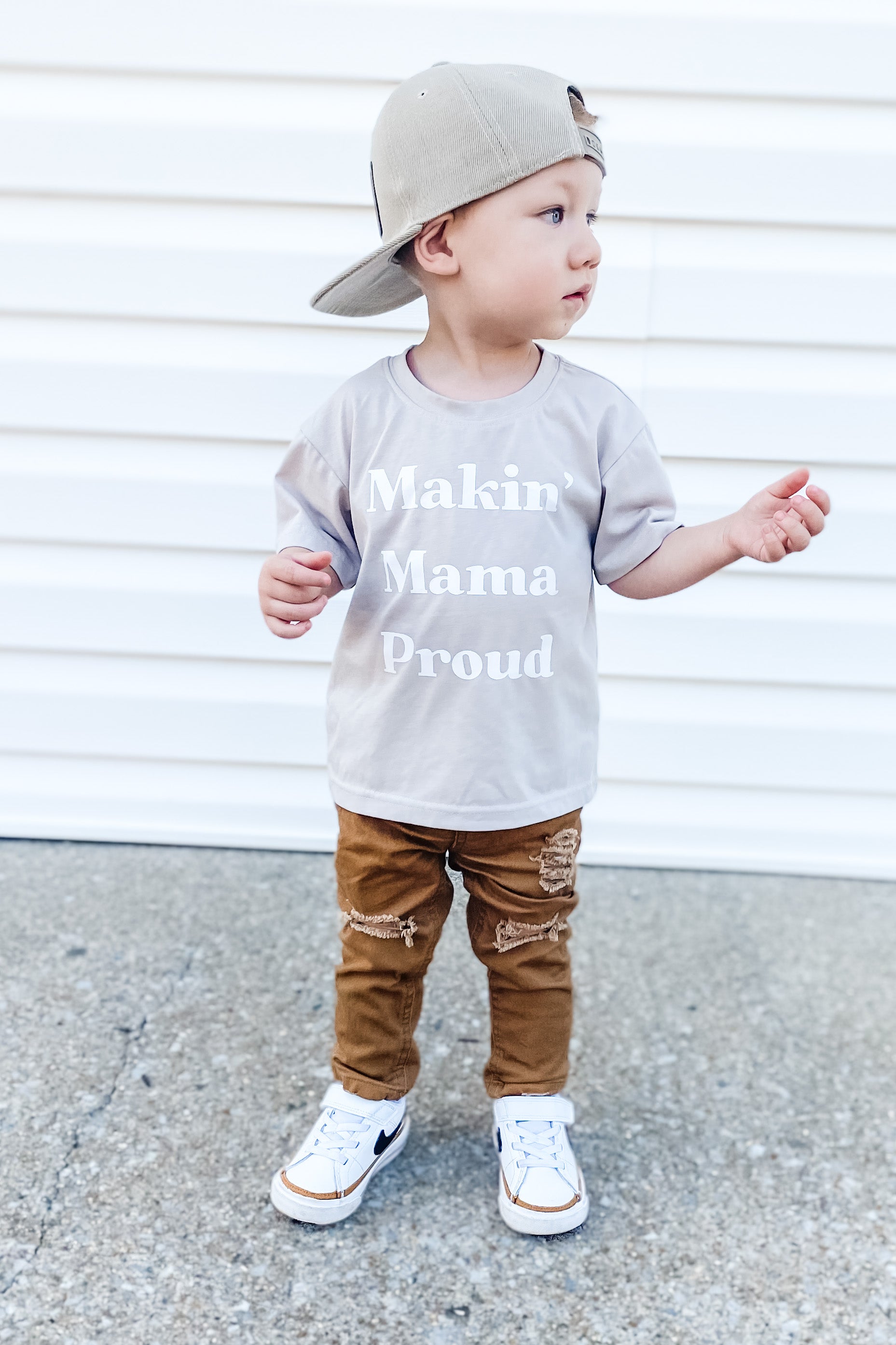 A graphic tee is such an easy way to make a fun outfit for little boys! We all know our little boys want to make us mamas proud!