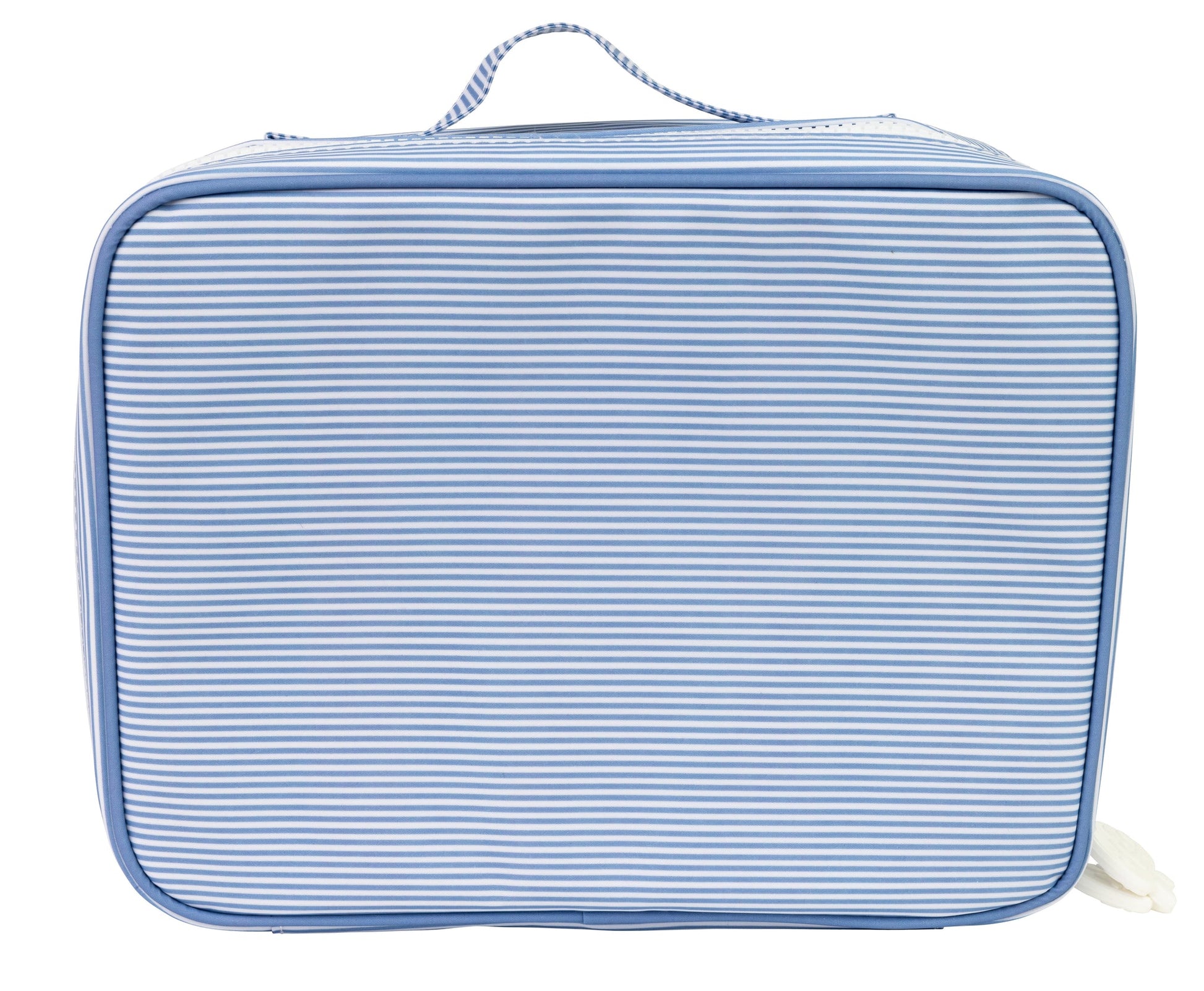 Coated, clean, and cute! The Lunchbox available several classic patterns, all wipeable. It is just the right size for your bento box. Equipped with a mesh inner pocket to hold your cooler packs and love notes, specifically placed on the back of the lunchbox leaving the front open for monogramming.